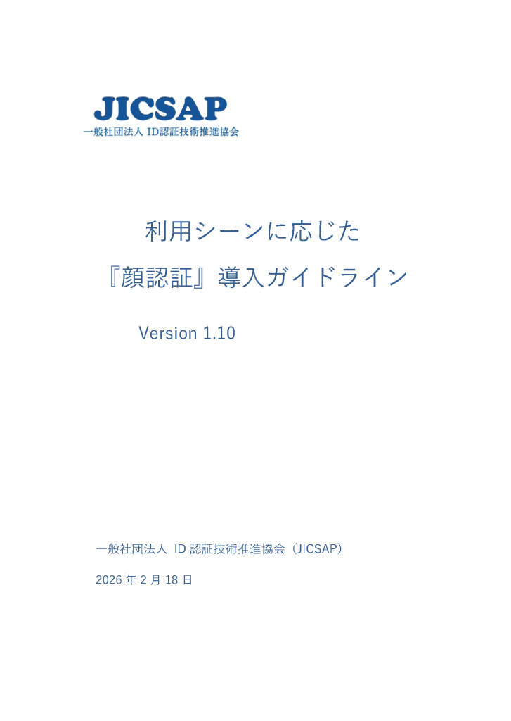 当協会が2023年6月に公表した「利用シーンに応じた『顔認証』導入ガイドライン」に関して、一部記載内容を変更した更新版(第1.10版)を2026年2月18日に発行いたしました。